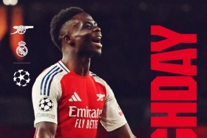 大战来临!阿森纳发布欧冠对阵皇马海报:萨卡单人出镜